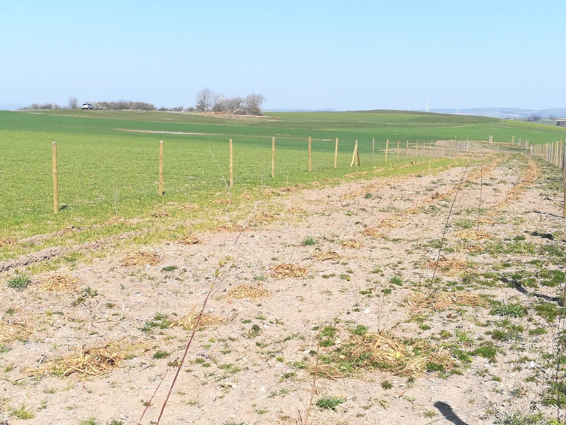 Zum Schutz vor Wildverbiss wurde ein umlaufender Wildschutzzaun um die Strauchhecke angelegt,