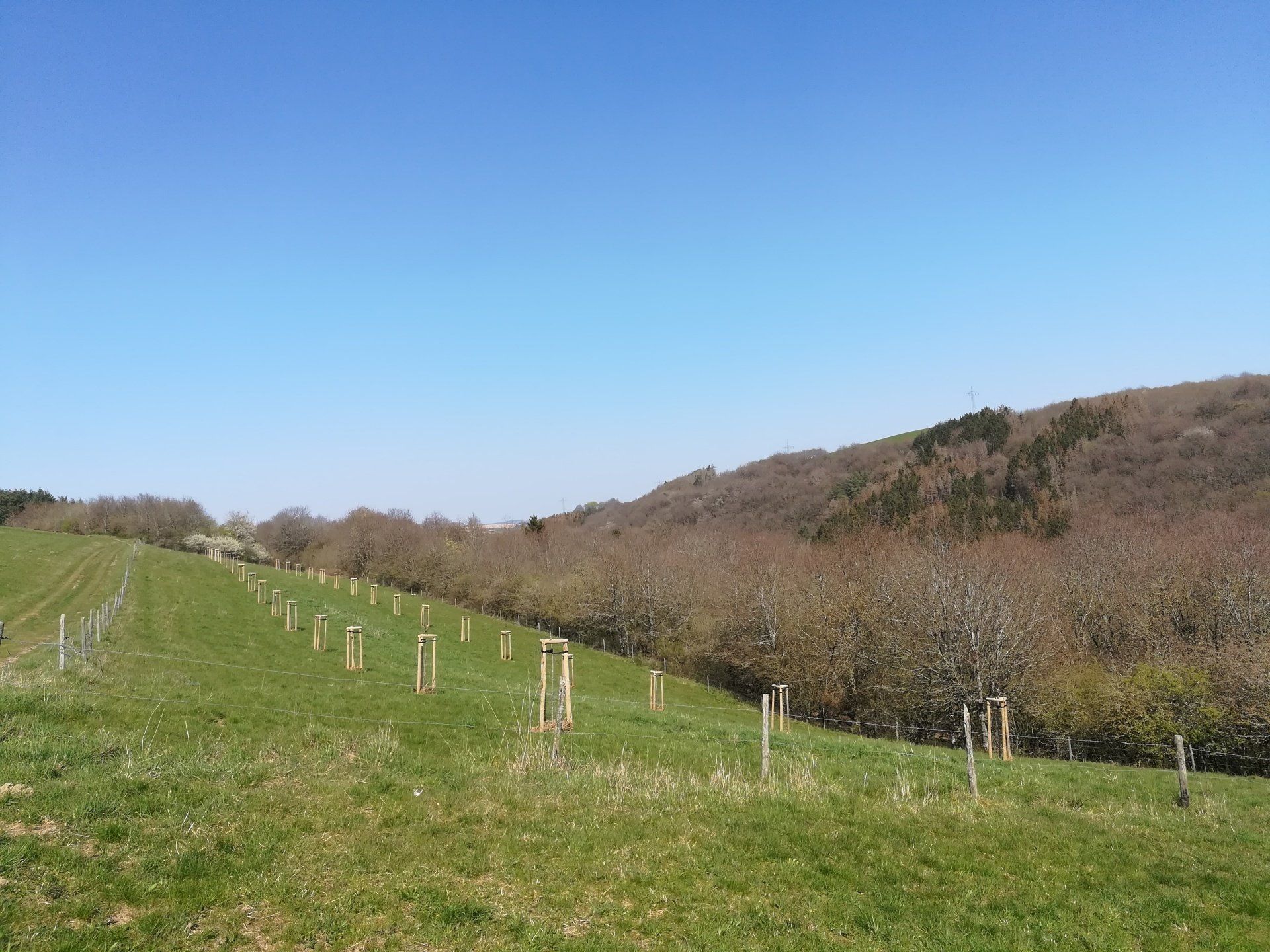 auch die Obstbaumfläche wurde mit Wildschutzzaun und zusätzlichen Dreibock vor Wildverbiss geschützt.
