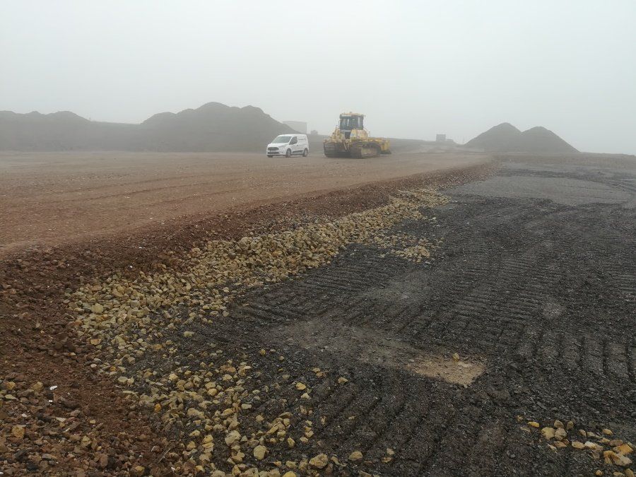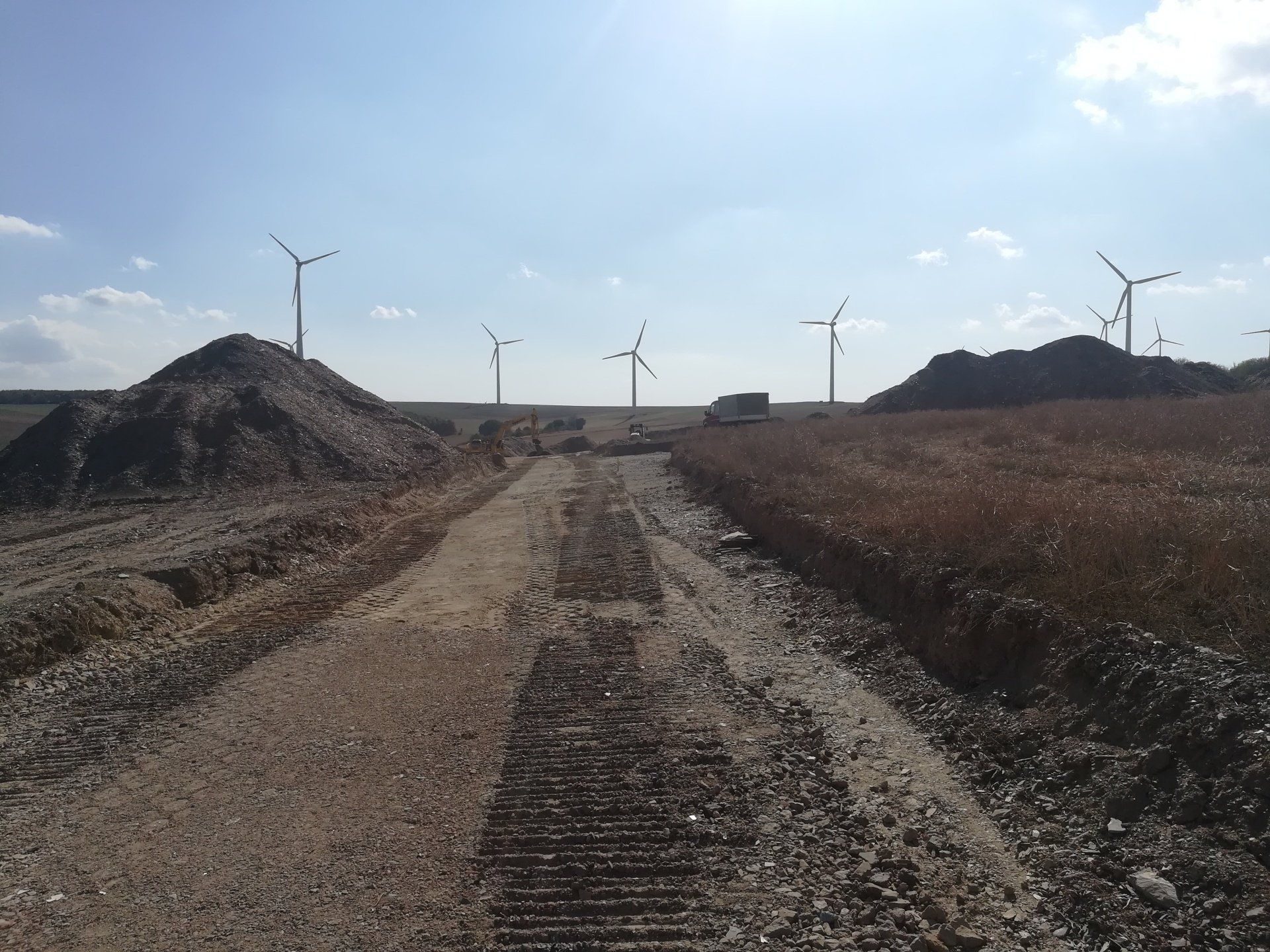 Die Stellflächen der PEL2D sind im ersten Bauabschnitt fertiggestellt und bereit für die Herstellung des Fundaments. Dafür wurde zur Herstellung einer ebenen Fläche bergseits Boden abgetragen der talseits wieder eingebaut wurde. Anschließend wurden die Flächen abhängig von ihrer späteren Belastung bei der Errichtung der WEA mit Schotter befestigt.