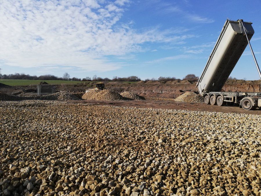 Zuerst müssen die Gräben, die im Zuge der archäologischen Ausgrabungen entstanden sind, wieder verfüllt und verdichtet werden. Hierzu soll Material von vor Ort verwendet werden. Im nächsten Schritt wird die Fundamentgrube erstellt, im Anschluss Kranstellfläche und Zuwegung.