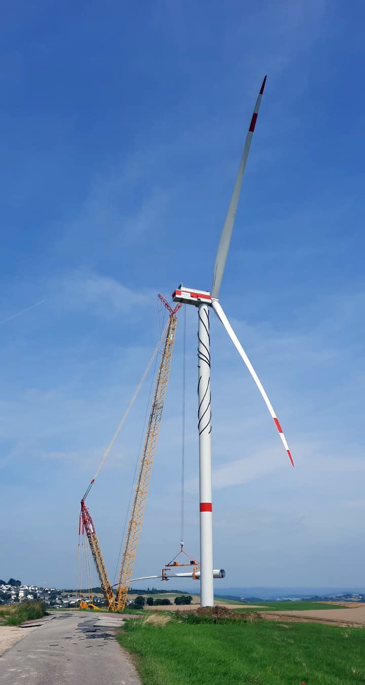 Der Stahlturm der Anlage mit einer Nabenhöhe von 121 m besteht aus 6 Segmenten, welche installiert wurden. Anschließend wurden das Maschinenhaus, die Nabe und die drei Rotorblätter in der Einzelblattmontage angebracht. Noch müssen einige technische Arbeiten in der Anlage und Tests durchgeführt werden bis die Anlage in Betrieb geht.